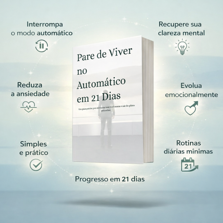 O resultado foi uma metodologia prática, direta e acolhedora, pensada para quem vive travado no automático e cansado de começar de novo. Neste ebook, Raphael compartilha esse caminho de forma clara e acessível, sem promessas irreais, para ajudar o leitor a recuperar clareza, constância e a sensação real de voltar a conduzir a própria vida.